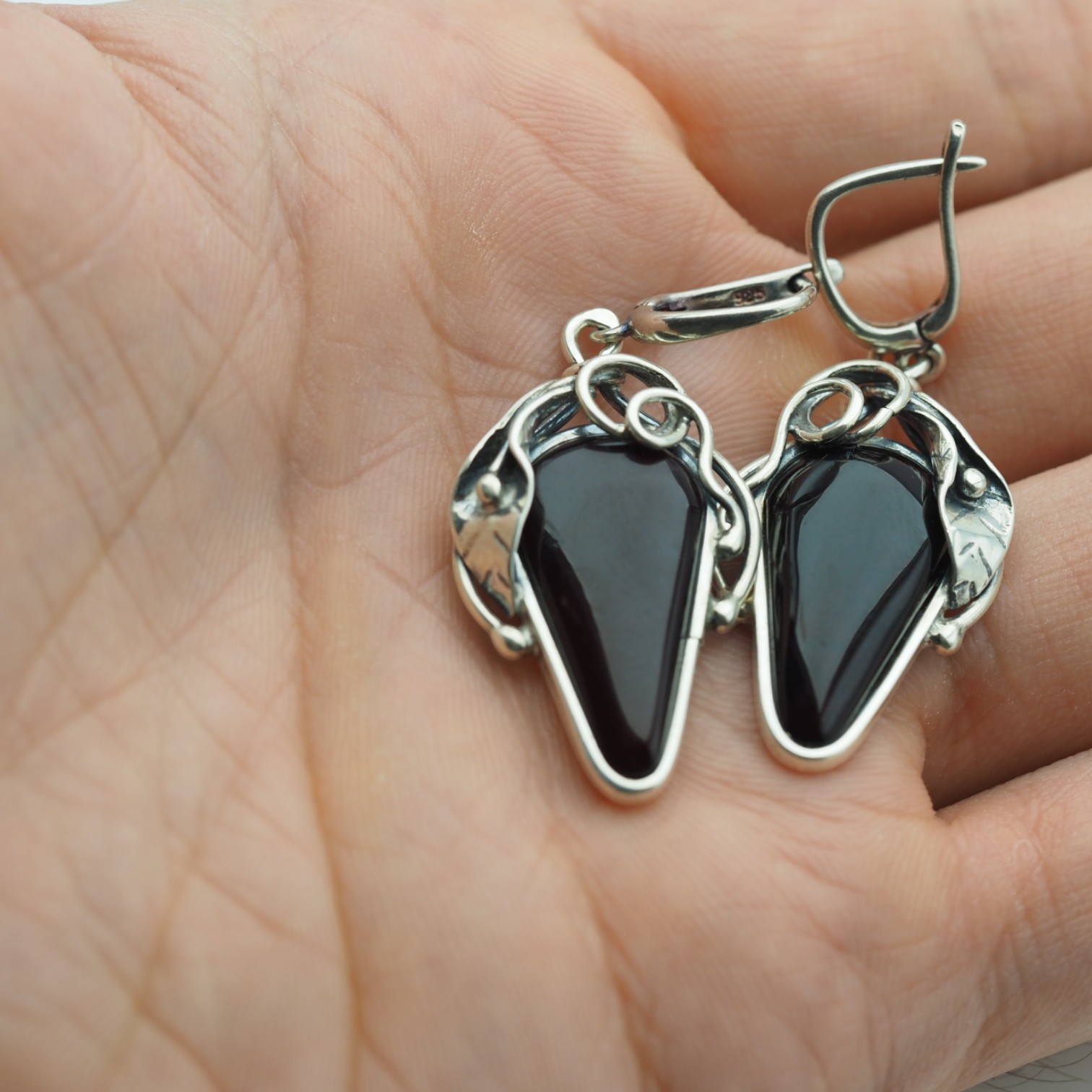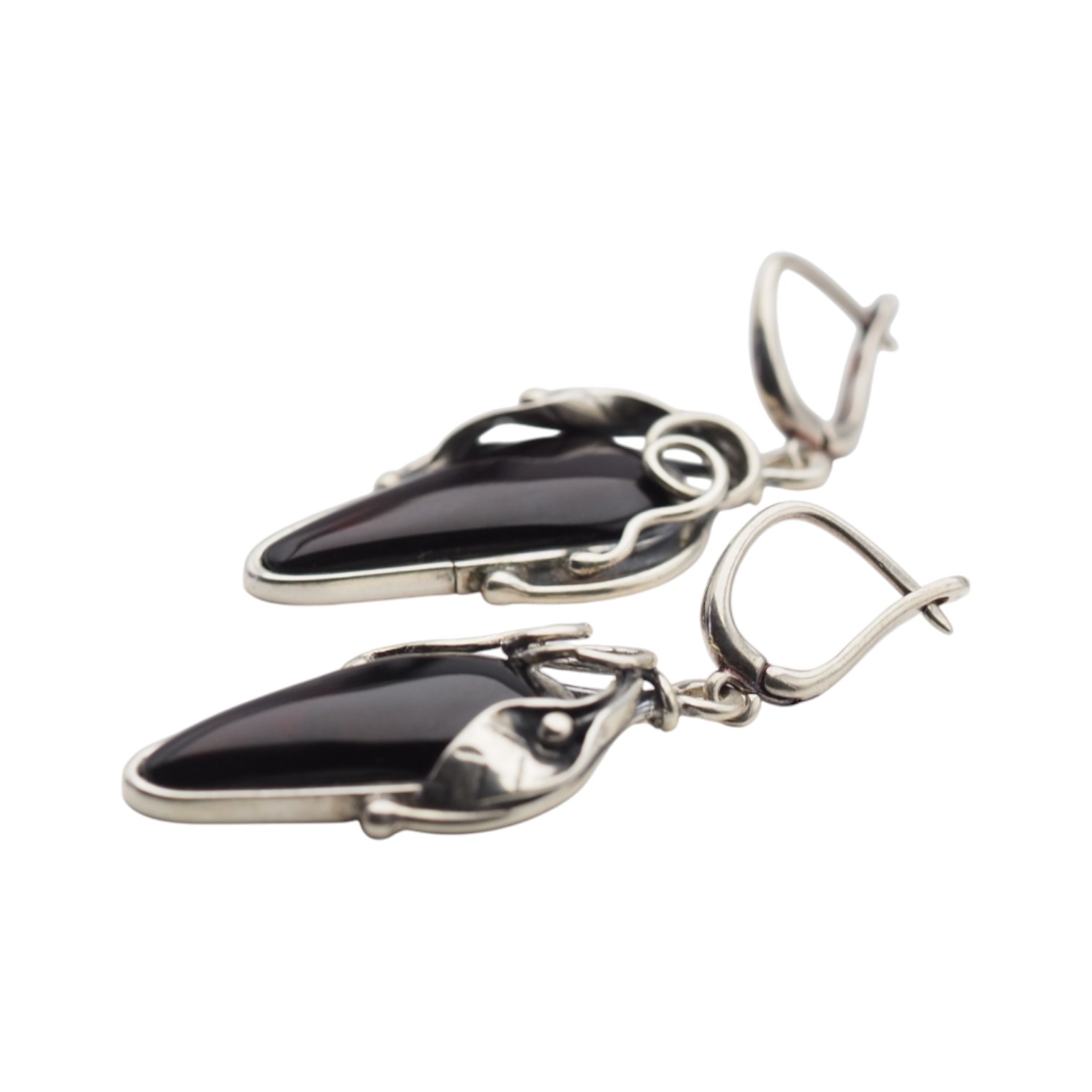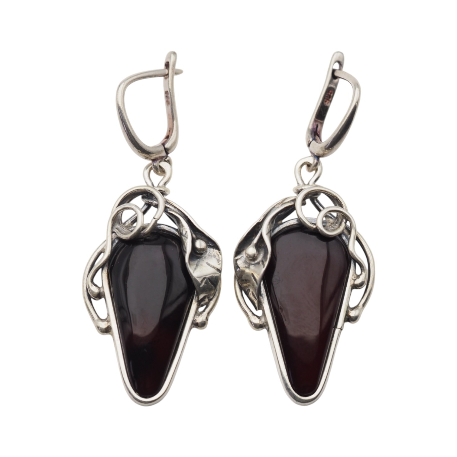 Kolczyki na angielskich zapięciach wykonane ręcznie z Bursztynu Koniakowego w kształcie łzy.