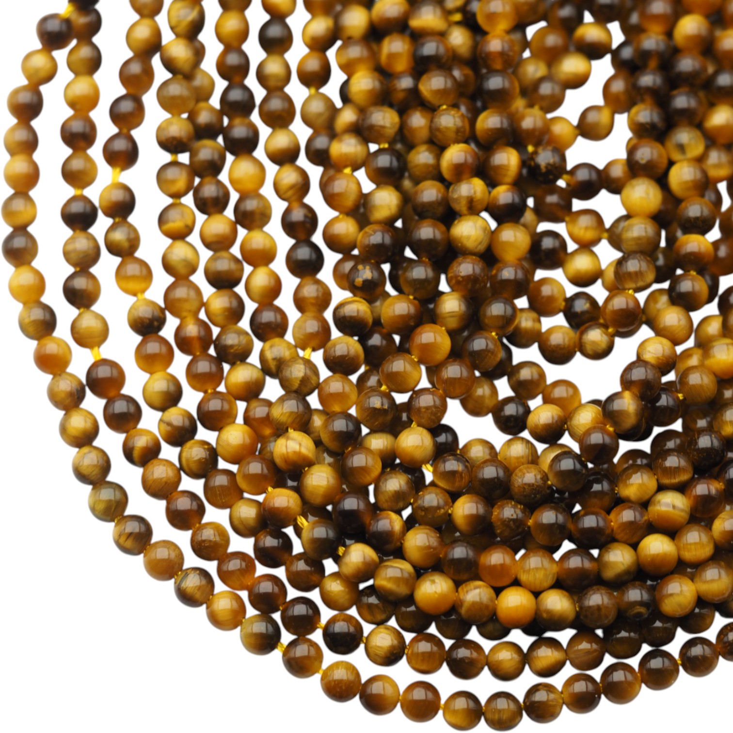 Naturalne tygrysie oko w formie polerowanych kulek zachwyca ciepłą paletą złota, brązu i miodu. Gładka, błyszcząca powierzchnia podkreśla charakterystyczny efekt optyczny „kociego oka”, który nadaje kamieniom głębię i elegancki, zmienny połysk.