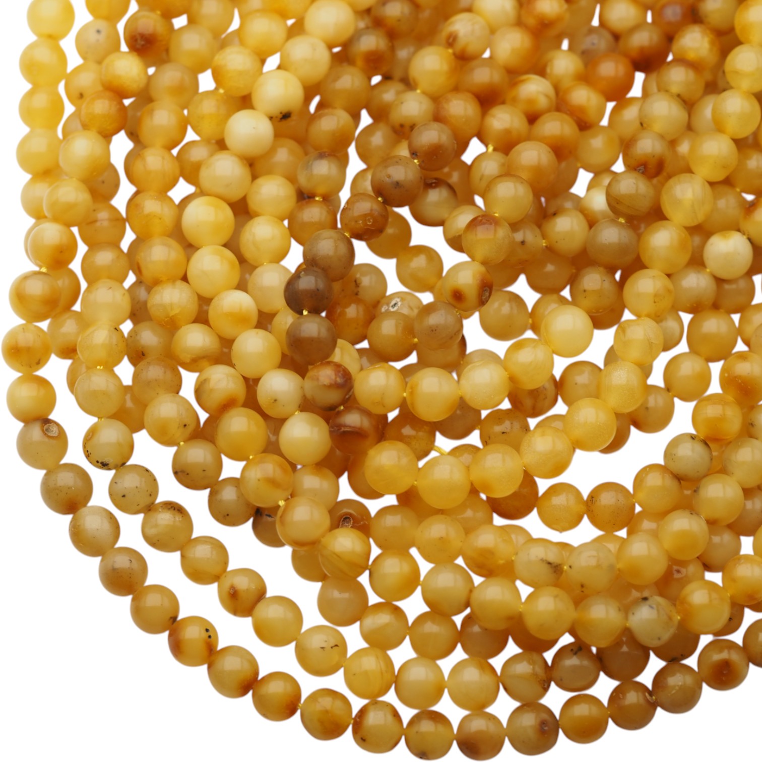 Mleczno-brązowy bursztyn bałtycki w formie polerowanych kulek to materiał o ciepłym, naturalnym charakterze i subtelnym połysku. Kolorystyka łączy kremowe, mleczne tony z brązem, dzięki czemu sznur prezentuje się szlachetnie i „organicznie” – dobrze wpisuje się w biżuterię inspirowaną naturą.