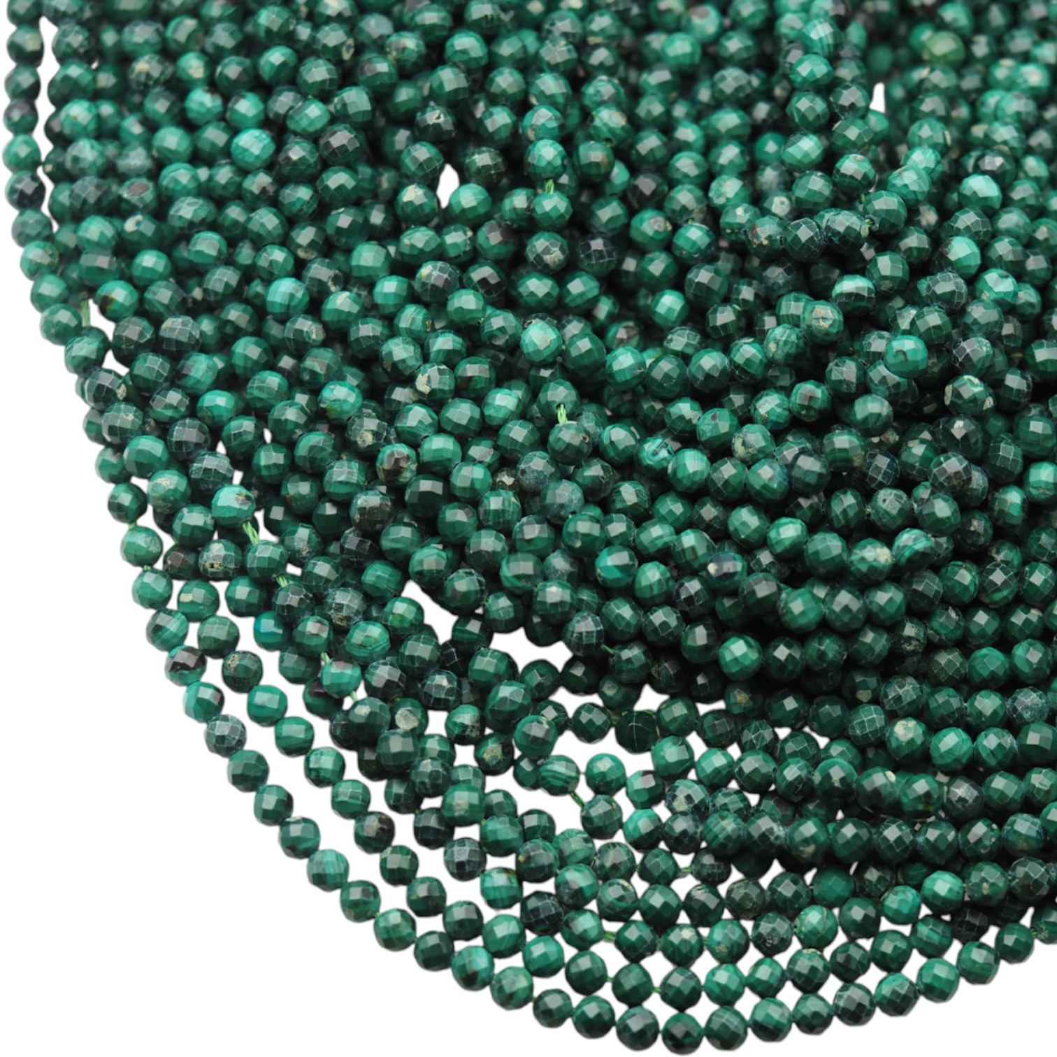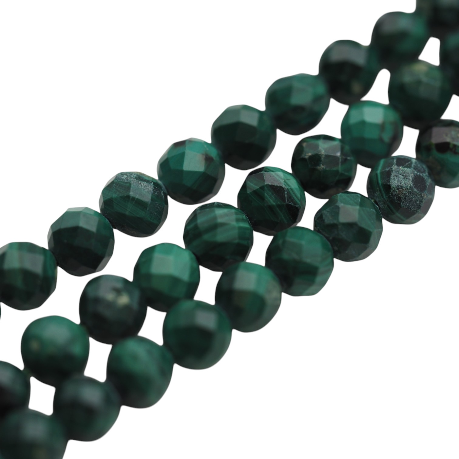Naturalny Malachit z wtrąceniami - fasetowane kulki.