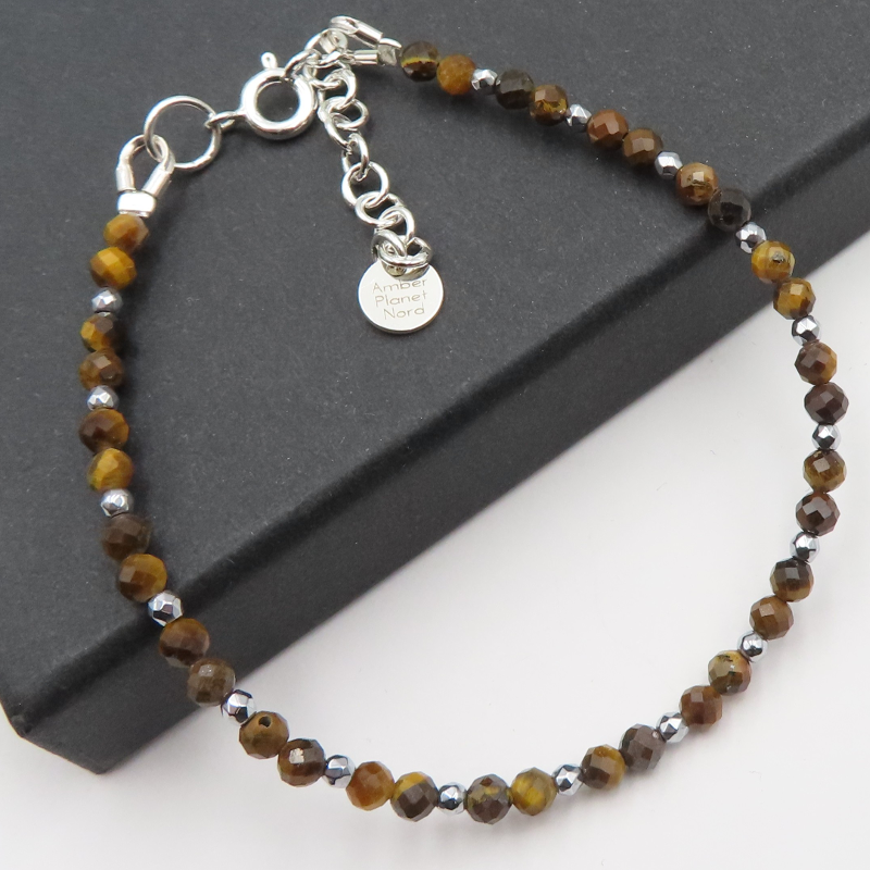 Bransoletka Tygrysie Oko fasetowane i srebro.