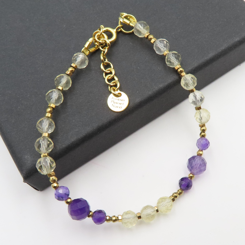 Bransoletka Ametyst, Cytryn i Hematyt w srebrze złoconym.