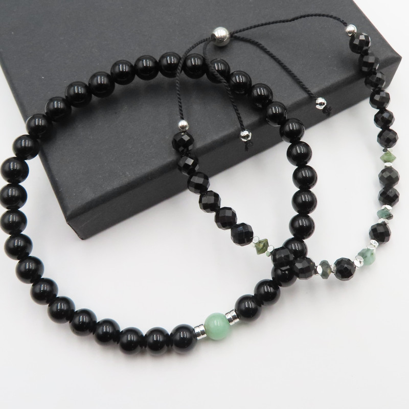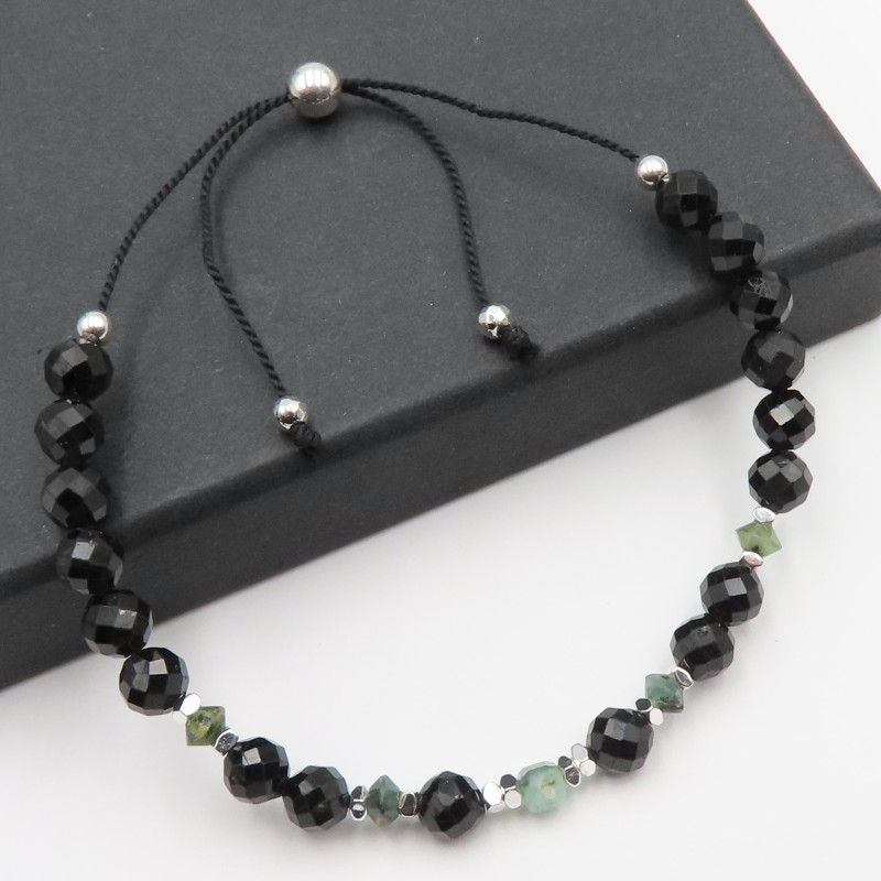 Bransoleta MĘSKA - Turmalin Czarny, Szmaragd i hematyt.