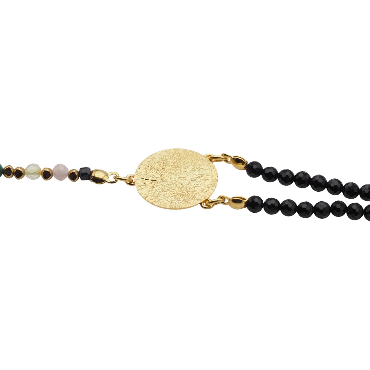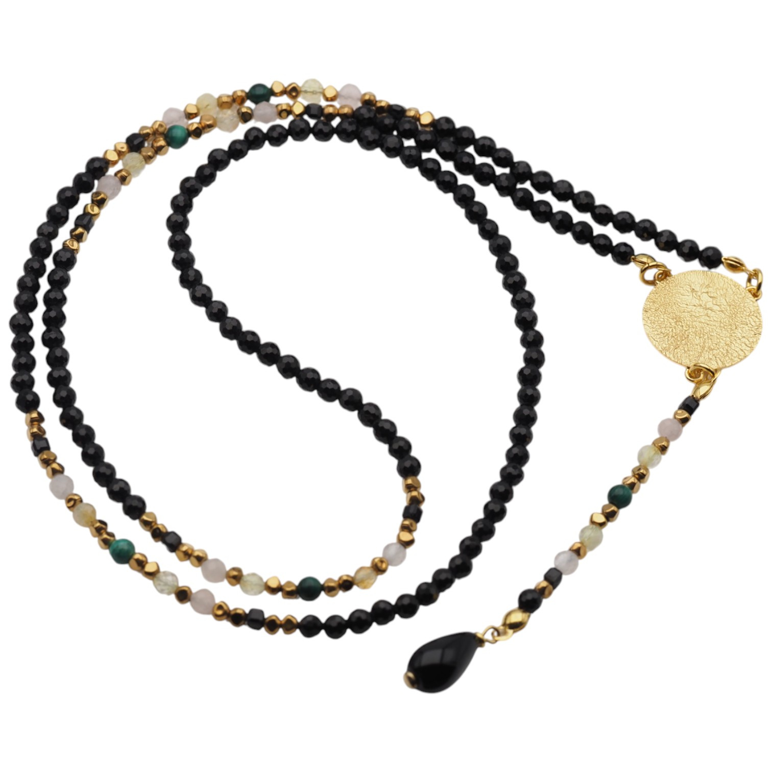 Naszyjnik ręcznie zrobiony na stalowej lince jubilerskiej.
