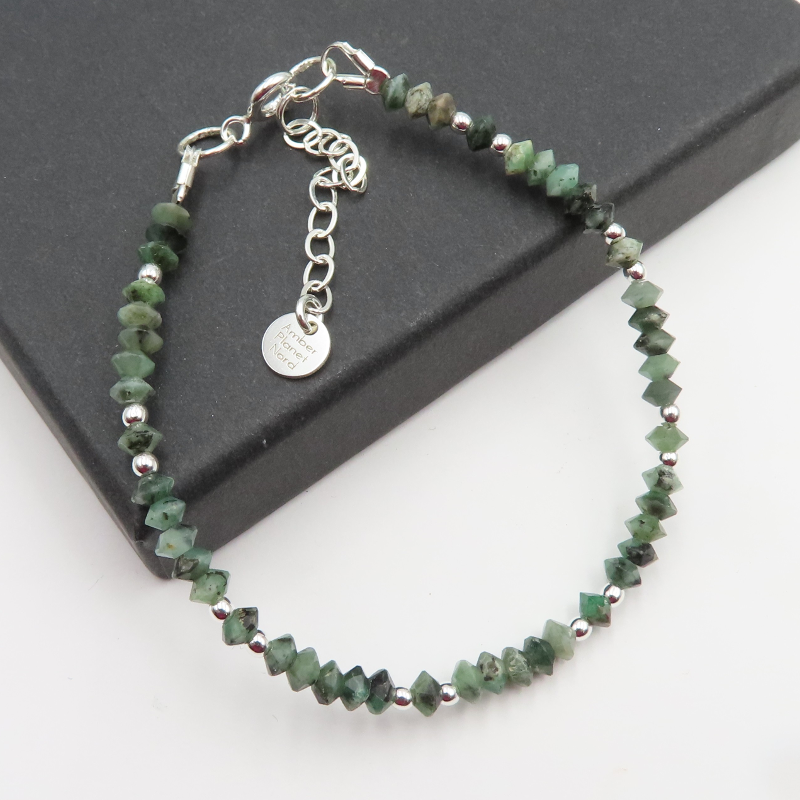 Bransoletka Szmaragd i Hematyt w srebrze.