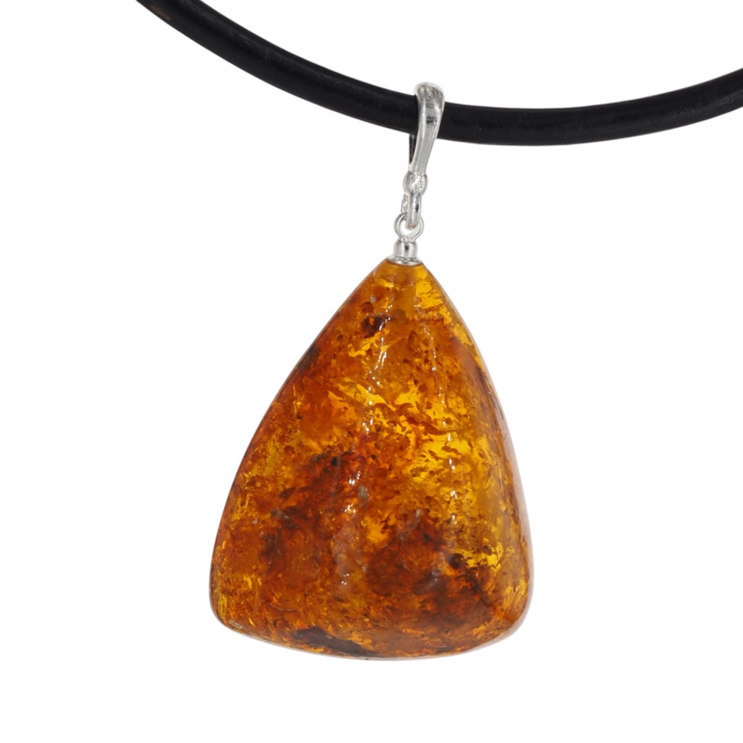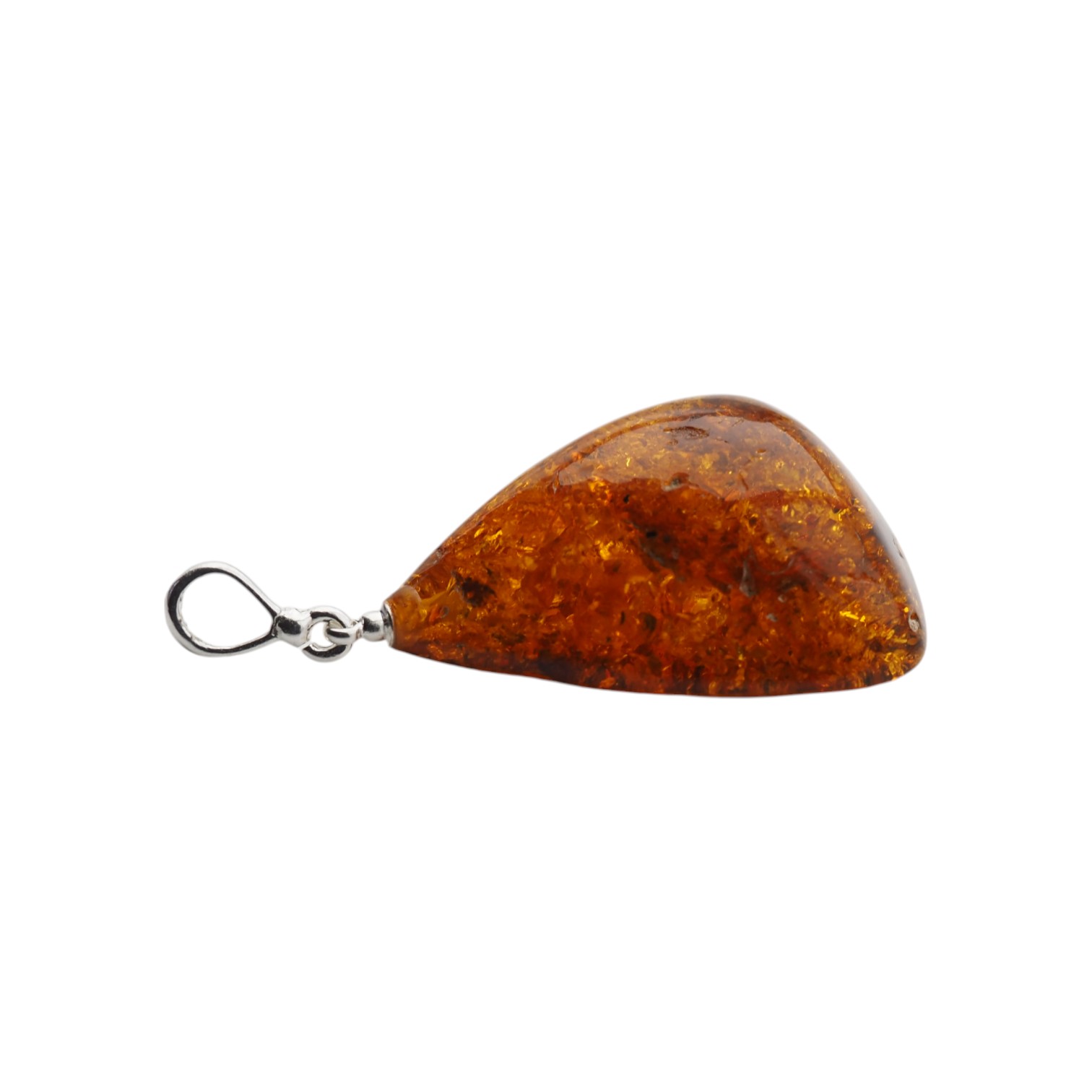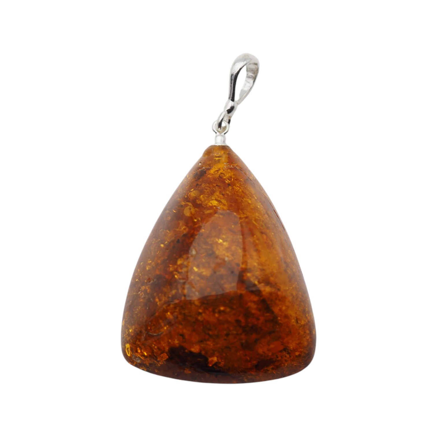 Starannie opracowany kamień został oprawiony w srebro próby 925 przez artystę jubilera. Prosta, klasyczna zawieszka pozwala wyeksponować naturalne piękno bursztynu i jego głębię.
