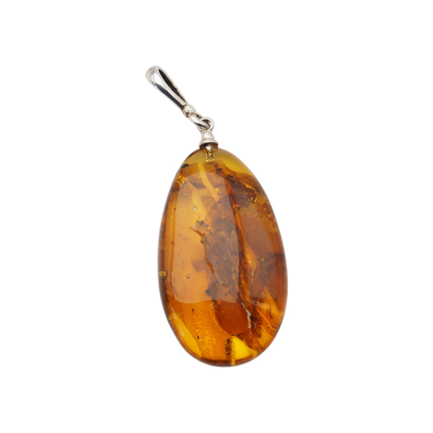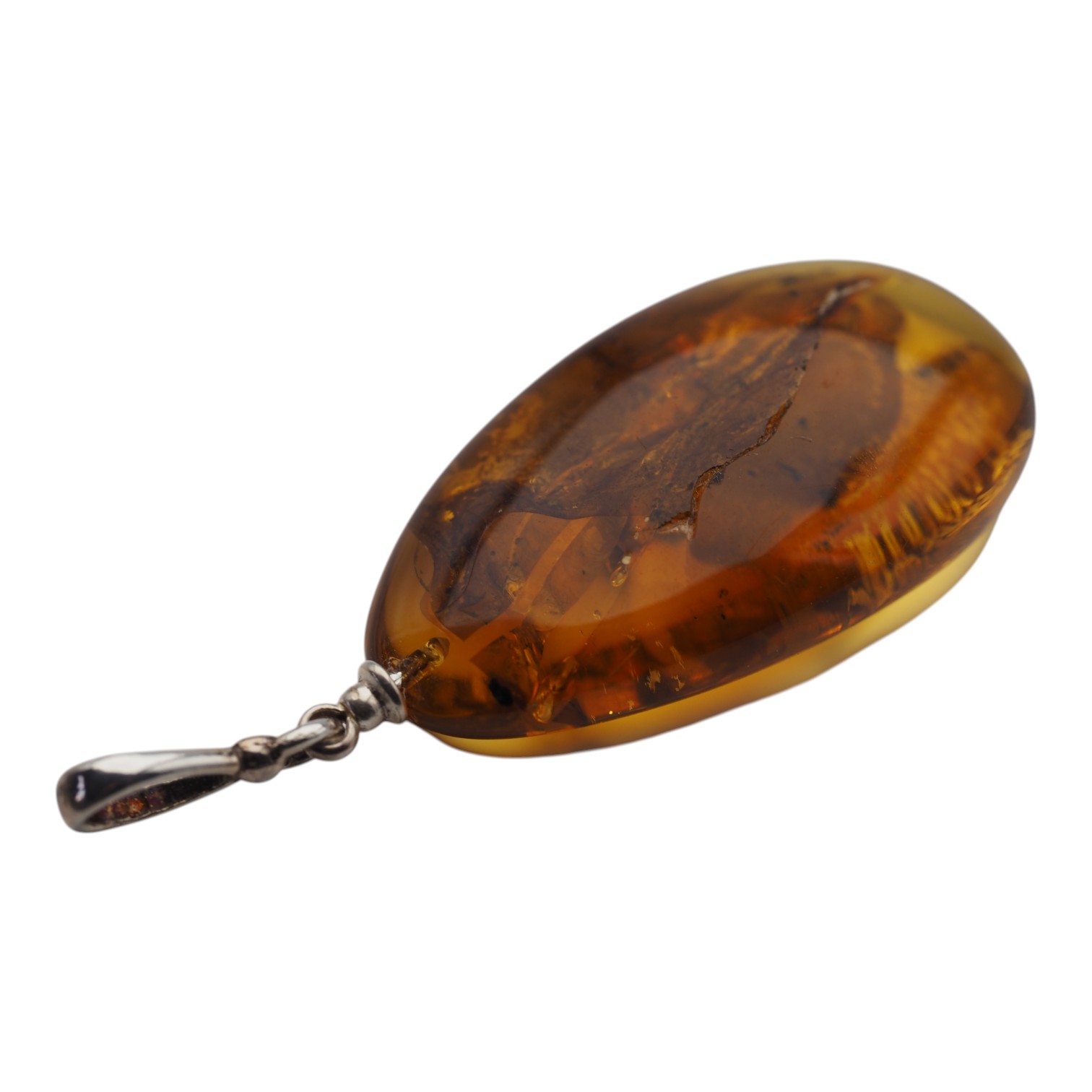 Bursztyn z inkluzją roślinną i srebro rodowane - zawieszka