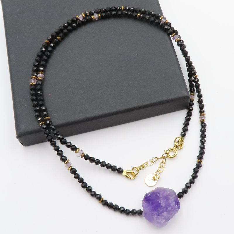 Kamienie: turmalin czarny, ametyst, hematyt złoty.