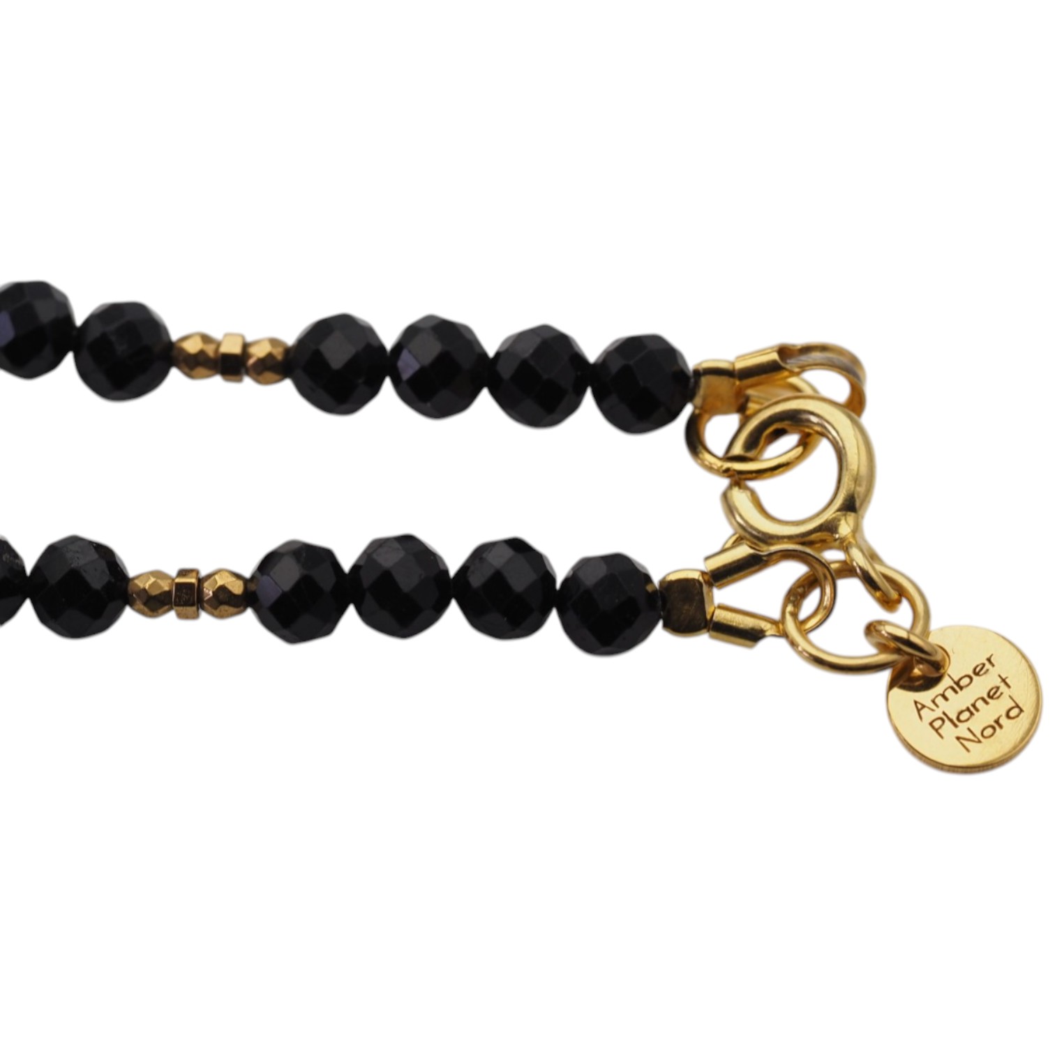 Drobne, fasetowane kamienie turmalinu tworzą rytmiczną, wyrafinowaną linię, przełamaną akcentami cytrynu w formie kulek oraz złotego hematytu. Całość uzupełniają elementy ze srebra próby 925 pozłacanego 24-karatowym złotem, które nadają biżuterii szlachetnego wykończenia.