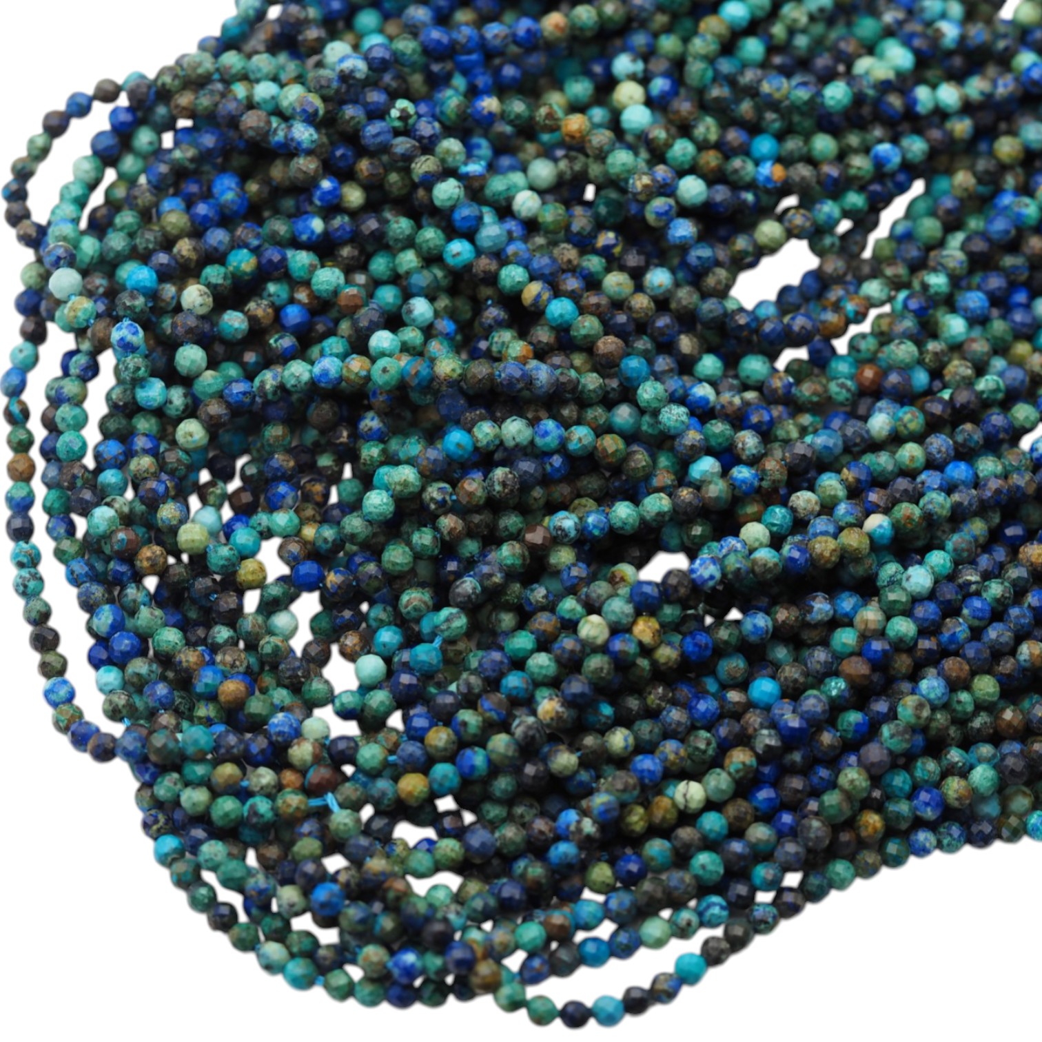Naturalny azuryt w formie fasetowanych kulek o średnicy ok. 3 mm to wyjątkowy kamień o głębokiej, intensywnej niebieskiej barwie, często z subtelnymi przejściami tonalnymi i naturalnymi strukturami. Jego charakterystyczny kolor nadaje biżuterii wyrazistości i elegancji, doskonale komponując się zarówno ze srebrem, jak i złotem.