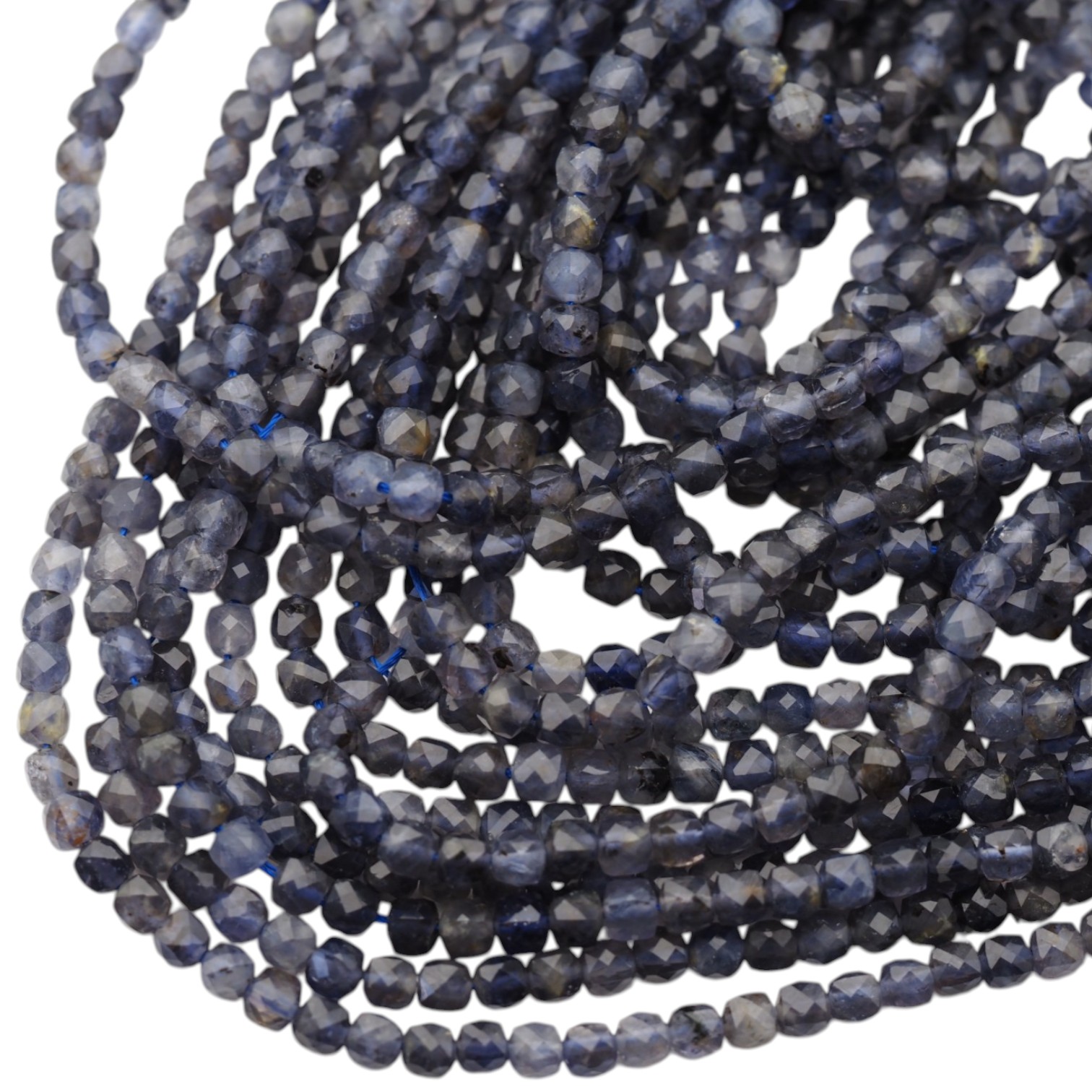Naturalny iolit w formie fasetowanych kostek o wymiarze ok. 4 mm to elegancki i wyrazisty kamień o charakterystycznej, głębokiej barwie – od niebiesko-fioletowej po granatową. Dzięki większemu rozmiarowi kostek materiał prezentuje się bardziej zdecydowanie, zachowując jednocześnie subtelny, jubilerski charakter.