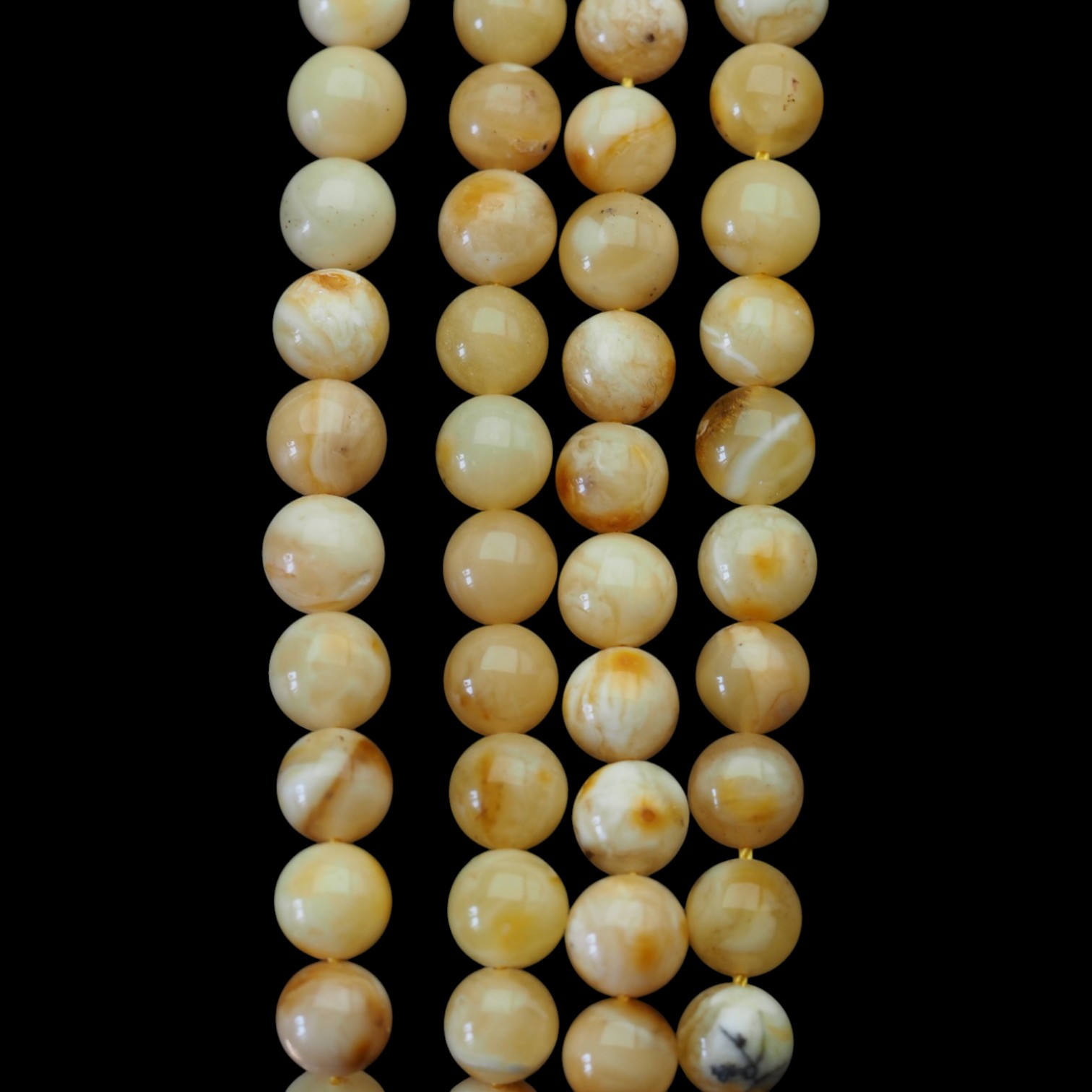 Bursztyn mleczno-brązowy, polerowana kulka.